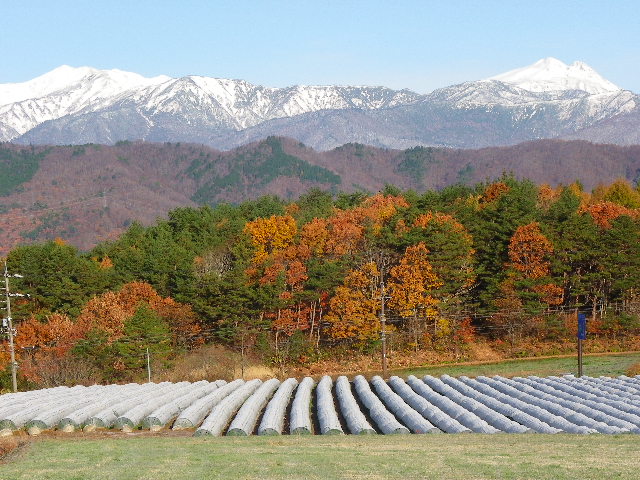 『牧歌の里』近くから望む白山も白さが増してきて、一部のスキー場では人工雪での営業が始まっているらしい。