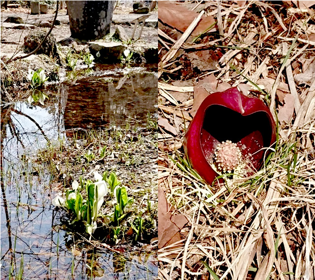 あまり好みではないが少し乾いた場所には座禅草もチラホラ、全体としては未だ落ち葉の色が